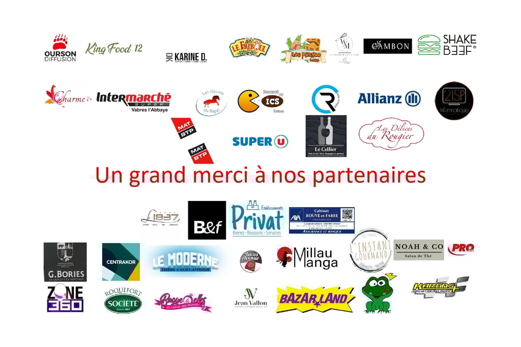 Pour finir, le comité d'organisation tient à remercier tous ces sponsors et mécènes ainsi que toutes les personnes sans qui rien n'est possible, les nombreux officiels, commissaire, bénévoles et amis qui se plient en quatre pour vous faire vivre une jolie épreuve sud aveyronnaise.